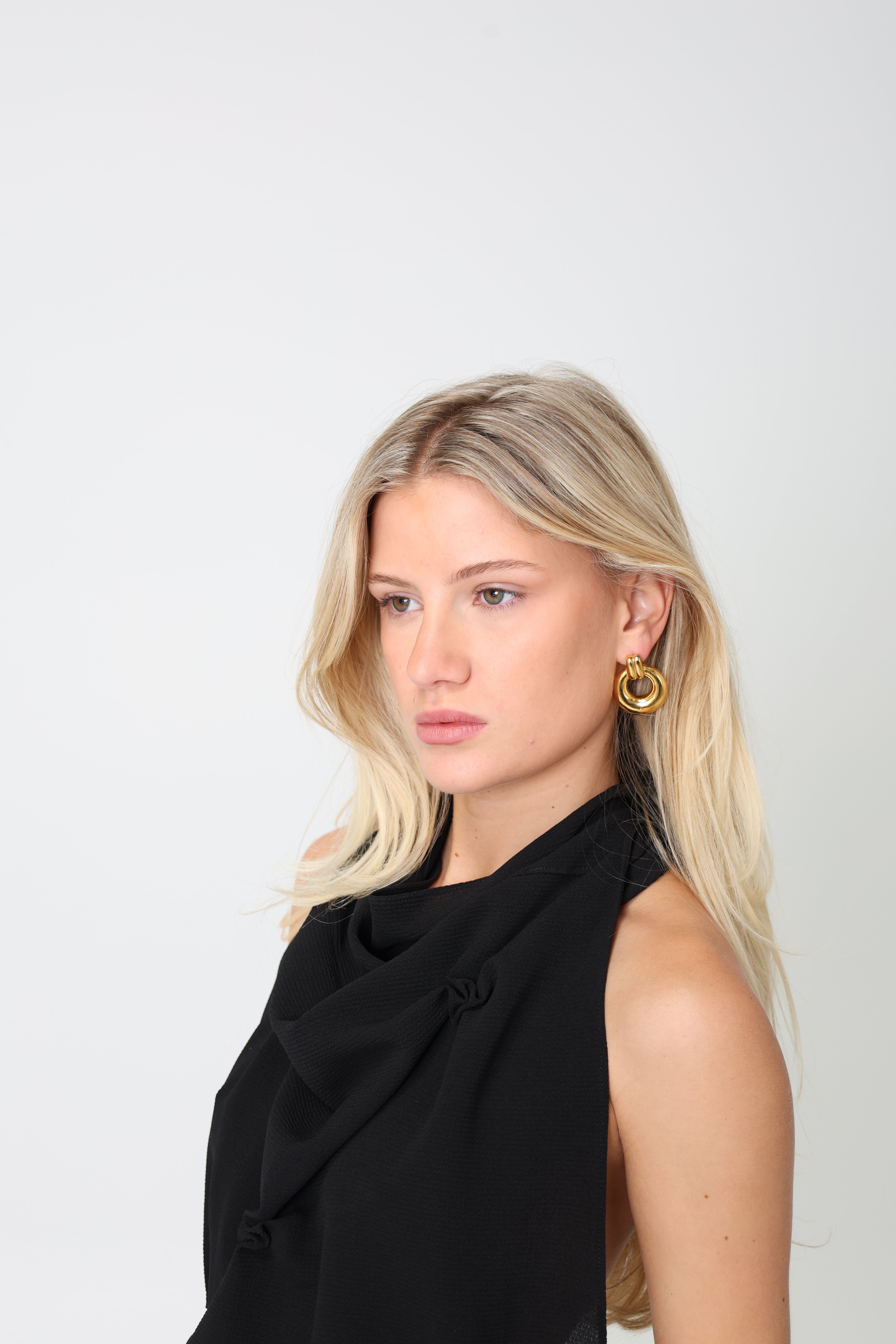 Perfect for those who love to stand out, the Chantal Earring gives the ideal touch of drama to both casual and formal outfits. Embrace a piece of artful design with a distinctive circular design that mimics the shape of a door knocker. This piece offers a unique blend of elegance and edge.